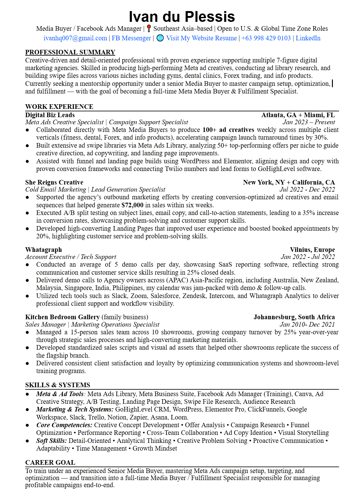 1.) Click Here To Download – Resume for Facebook Media Buyer / Backend Fulfillment Specialist