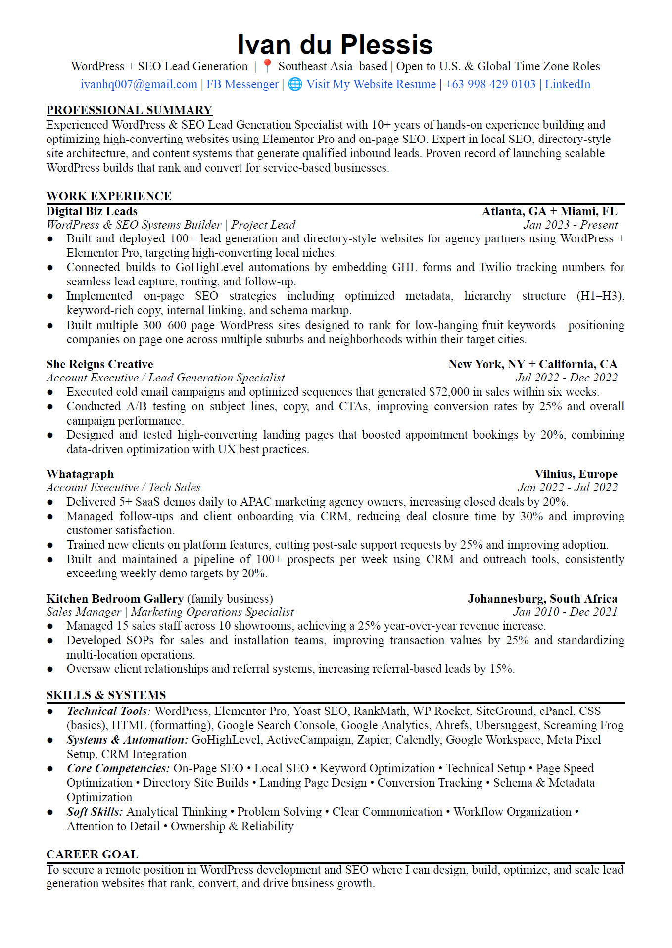 I’m seeking a full-time Website + SEO position where I can dedicate myself fully to helping your business and supporting the team.